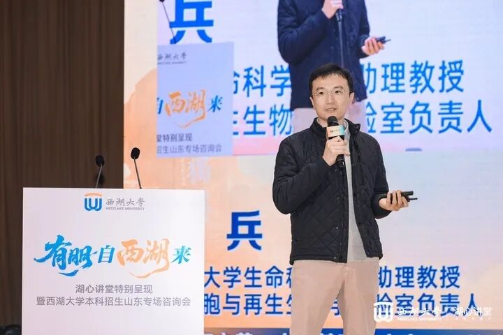现场,一同“归来”的,还有三位山东老乡,来自山东淄博的西湖大学细胞生物学讲席教授、生命科学学院院长于洪涛,来自青岛的干细胞与再生生物学实验室负责人张兵,与来自烟台的自主智能实验室负责人于开丞。他们针对“如何萌发学科兴趣”“人生的岔路口,如何做出勇敢选择”……那些对西湖大学与科学家的好奇以及萦绕在学子与家长心头的疑问,一一给予最坦诚的回应,只为遇见同频的灵魂。